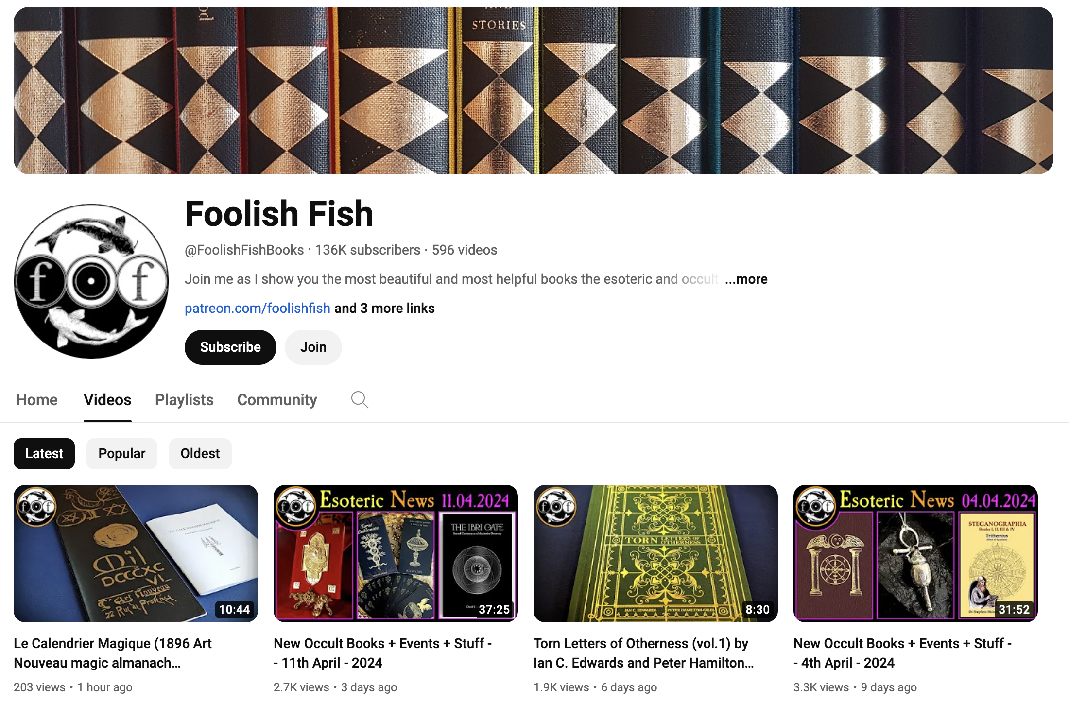 Foolish Fish YouTube homepage detail.