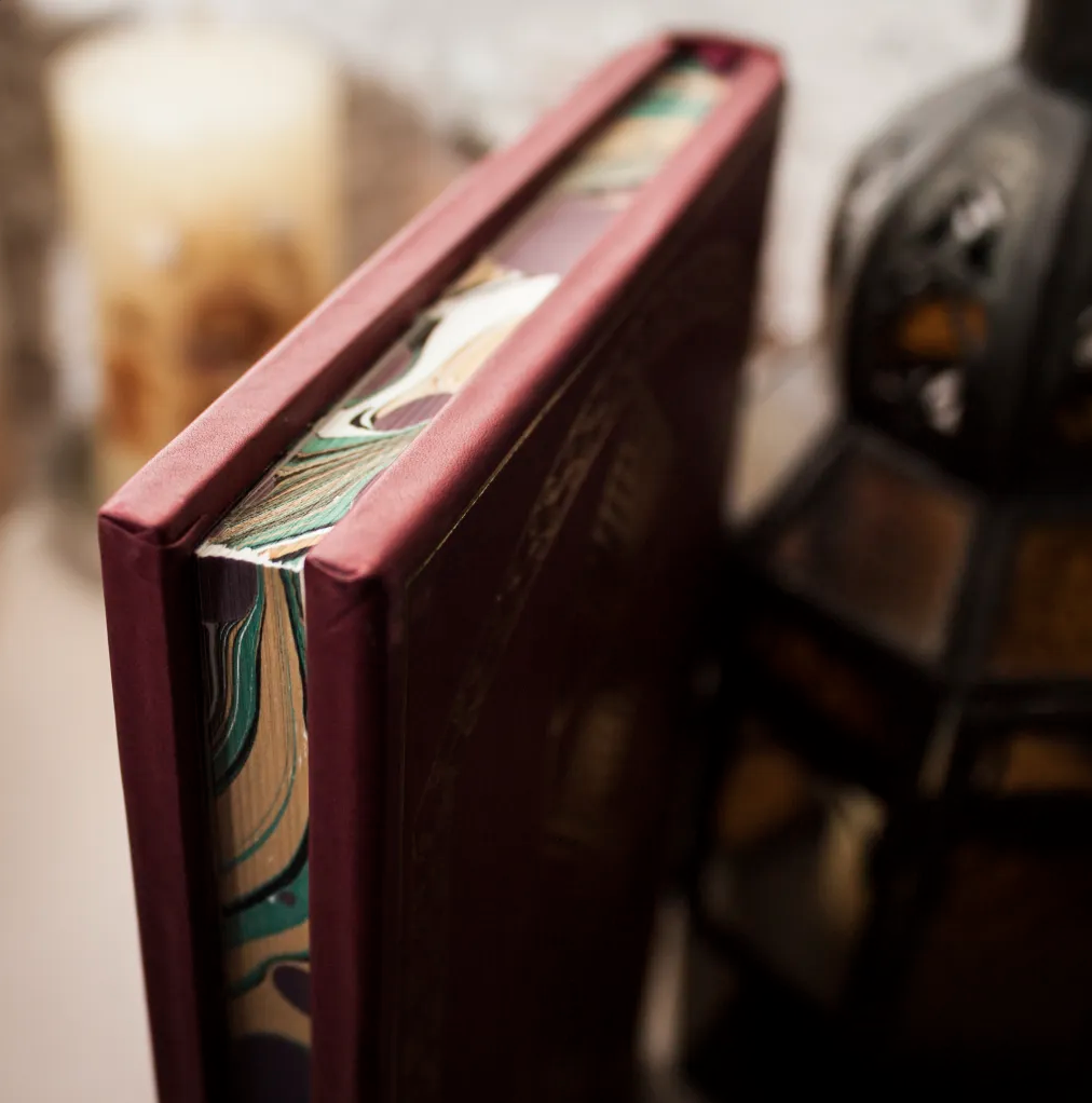 Marbling can lend a unique expression to a book, one which often reflects the theme or continents of a given work: