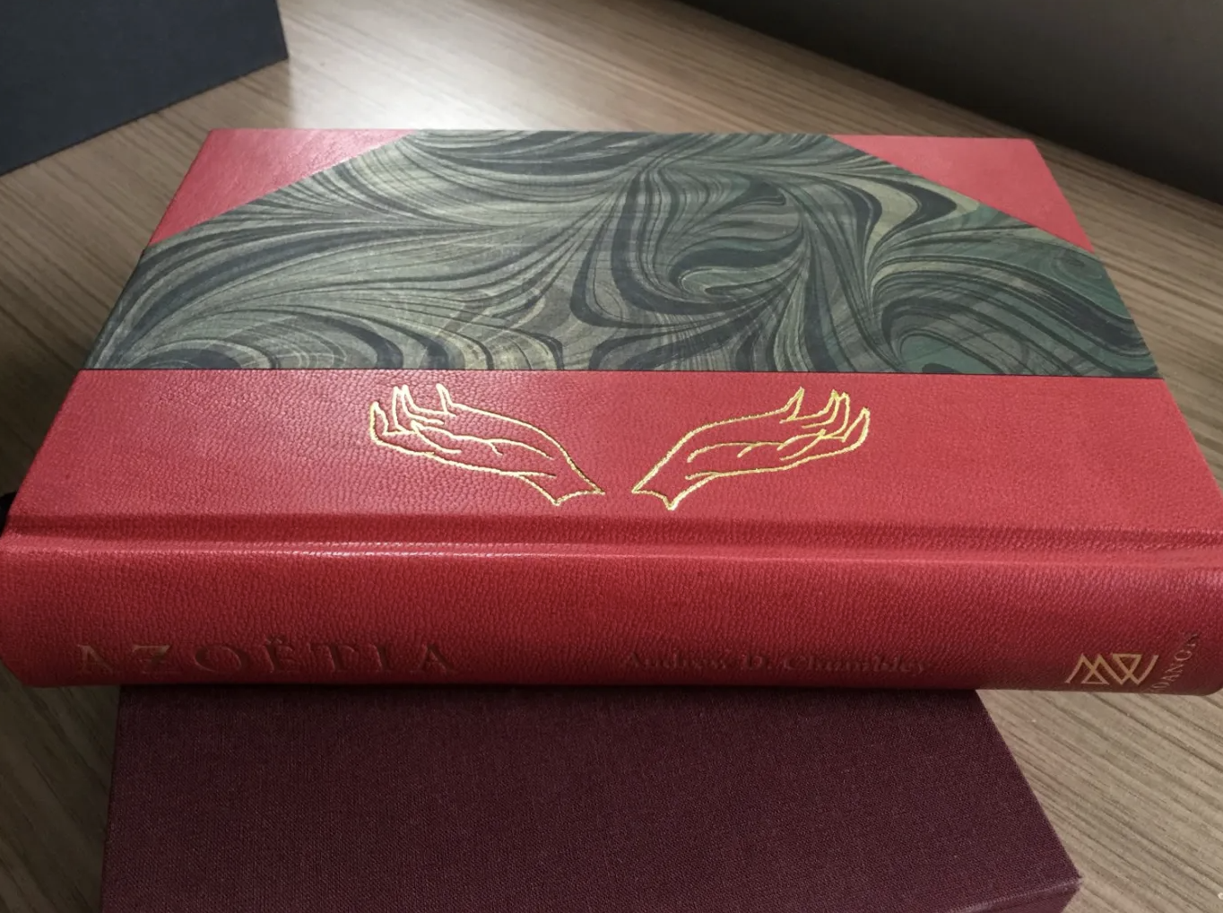 Enveloping these 160 pages is, according to Atramentous Press, a “…burgundy book calf of the highest quality as supplied by one of the most prestigious tanneries in the UK.” A signed copy, the work also glimmers with a wondrous gold foil.