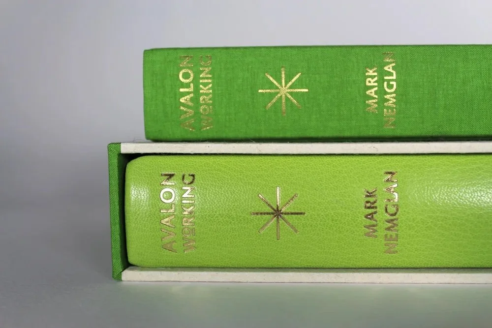 Binding: Full luminous green goatskin, marbled endpapers, all edges gilt, two silk ribbons, presented in a custom slipcase.