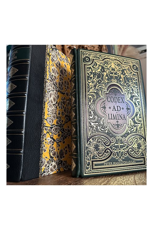 Accompanying material: As with previous volumes the deluxe book is encased by a solander box which is made to look like a book. The solander will have quarter Moroccan goat leather with gold foil block edging, (see photos of previous deluxes in the Black Dragon series) Wooden slatted and strengthened spine over which the goat leather is placed.
