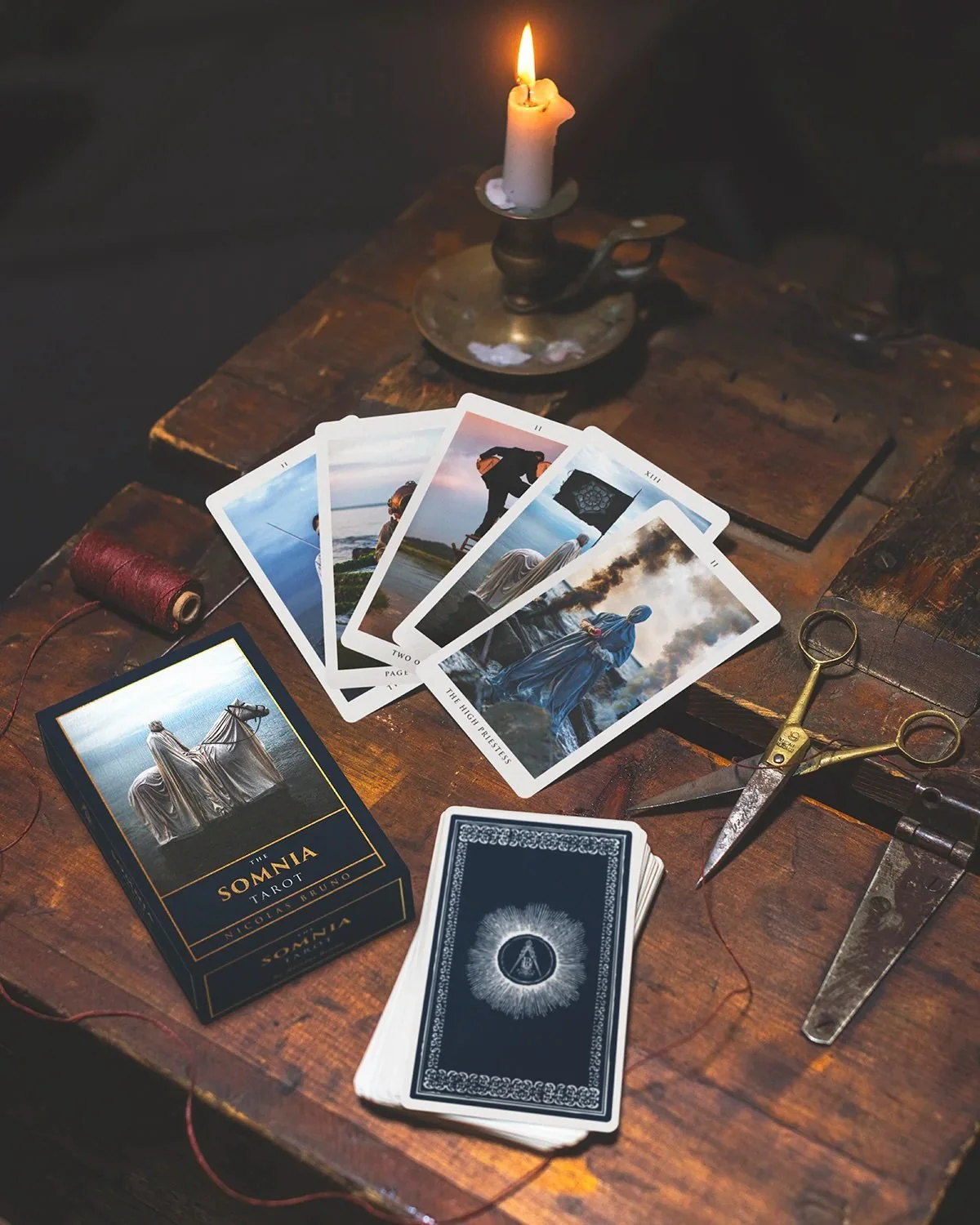 Each artwork within The Somnia Tarot showcases Bruno's work within the mediums of photography, sculpture, and costume design. References are made to The Rider-Waite-Smith tarot deck along with Jungian archetypes.