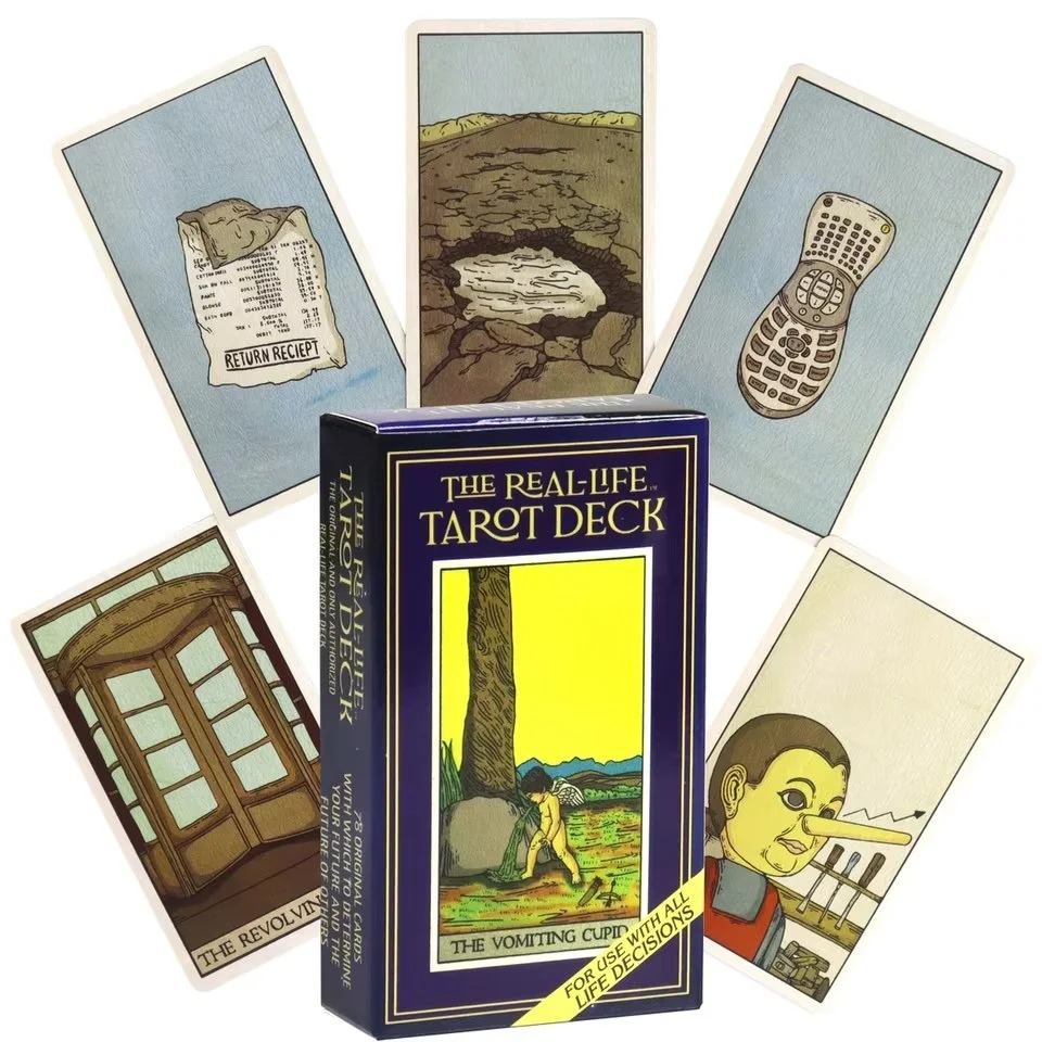 Not many Tarot decks have a card called "The Vomiting Cupid". Even fewer have "The Conspiracy Theorist". We don't think a single one has the life-changing event "Moving Back In" depicted!